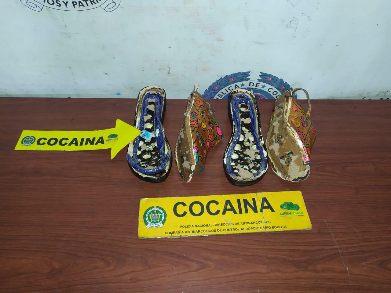 En las últimas horas la Policía Nacional a través de la Dirección de Antinarcóticos en operaciones adelantadas en el Aeropuerto Internacional El Dorado, realizó los controles en la zona de carga y envíos internacionales, hallando a través de los escáneres dos pares de zapatos y un estuche de una cámara fotográfica que al realizar las verificaciones se observaron figuras irregulares en las suelas y paredes del estuche.