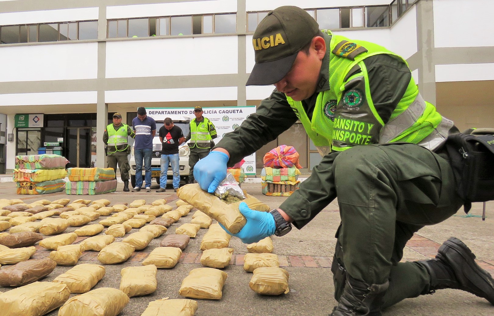 La captura se produjo en el kilómetro 70 de la vía que comunica al departamento del Huila, cuando nuestros policías adscritos a la Seccional de Transito y Transportes del Caquetá requirieron este vehículo, con el fin de practicarle un registro de rutina, hallando debajo de varios empaques de pasabocas, 15 costales de lona de colores, llenos de varios paquetes cuadrados envueltos en cinta adhesiva, que en su interior contenían una sustancia con olor y características a la marihuana. Inmediatamente hallada esta sustancia estas personas fueron trasladadas al Comando de Departamento de Policía Caquetá, con el fin de realizar una prueba pericial a la sustancia, la cual arrojó como resultado: Positivo para Marihuana tipo Creepe, con un peso bruto de 522 kilogramos.