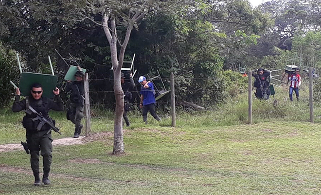 Tras un recorrido de más de tres horas y media a pie, en vehículo y lancha, a la escuela San José de Puerto Alicia, ubicada en la vereda Caño Nare del municipio de Puerto López, arribó la comitiva integrada por personal del Departamento de Policía Meta, Bomberos, profesores y comunidad en general, con el propósito de entregar los 20 pupitres gestionados con la administración de la municipalidad, para contribuir a la calidad educativa de los estudiantes de este plantel de básica primaria.