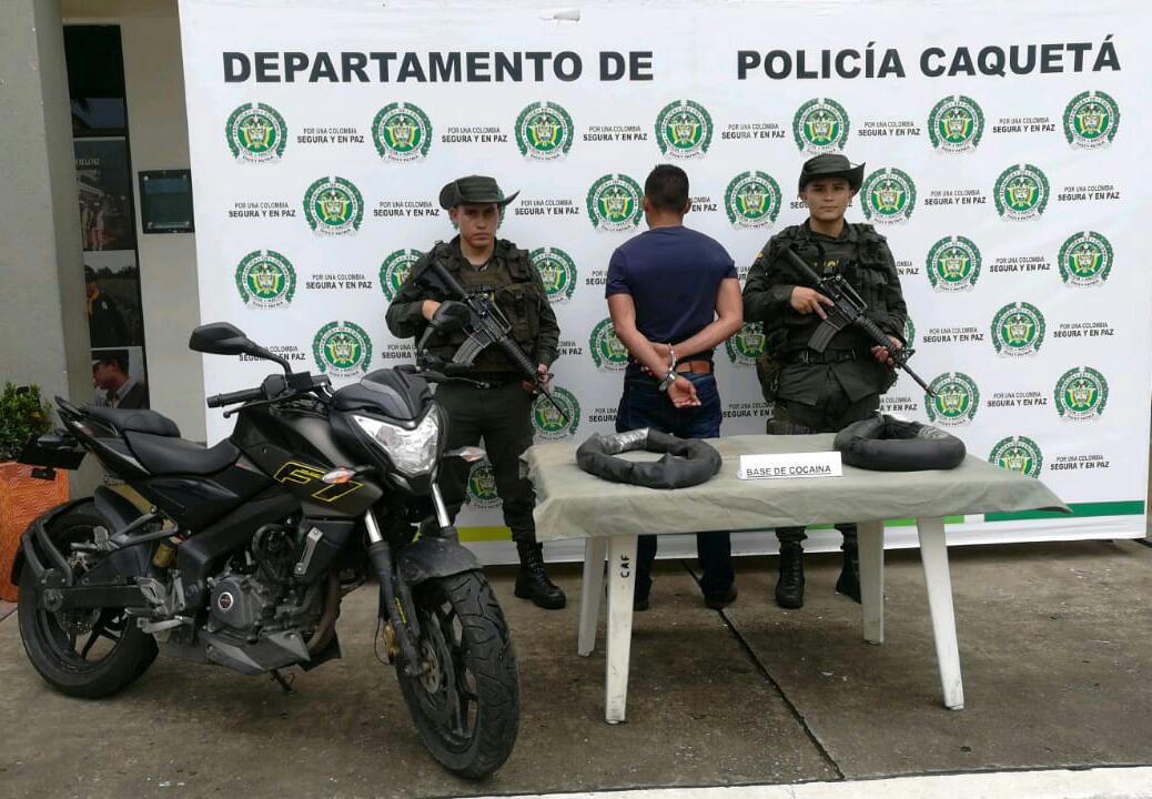 Continúan las acciones contundentes de la Fuerza Pública contra los traficantes de estupefacientes en el Departamento del Caquetá. En esta ocasión, nuestros uniformados de la compañía Antinarcóticos mediante actividades de puesto de control en la vía que de la Montañita conduce a Florencia, exactamente en el lugar conocido como Puerto Arango, lograron la captura de un hombre que se movilizaba en una motocicleta transportando camuflada al interior de los neumáticos de las llantas de la moto 15 kilos de base de coca.