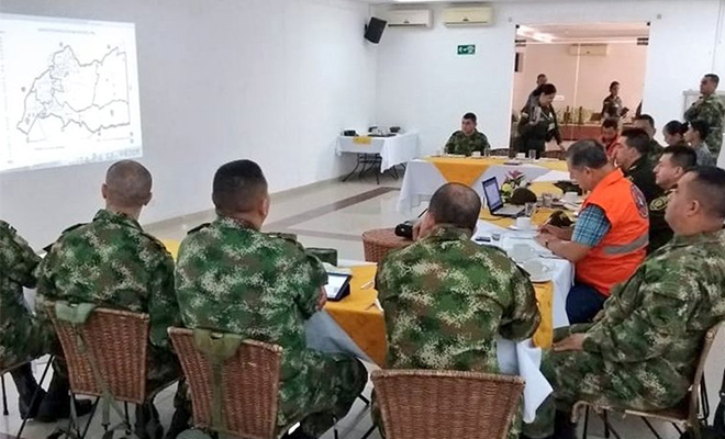 En el marco del Plan Semana Santa "Juntos Construimos Convivencia y Seguridad", el Departamento de Policía Meta participó en la reunión de coordinación interinstitucional, la cual se adelantó junto a las Fuerzas Militares y Defensa Civil Colombiana, en las instalaciones del Hotel Jaque de la Cuarta División del Ejército Nacional.