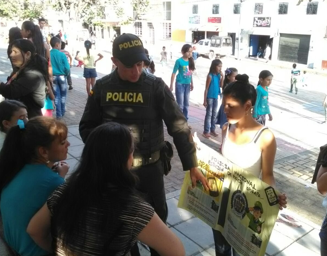 La Policía del departamento del Huila, en el marco de la estrategia contra el Hurto a Celulares, a través de los grupos de Prevención y el Modelo Nacional de Vigilancia Comunitaria por Cuadrantes, en el mes de enero del presente año se han llevado a cabo actividades comunitarias con el fin entregar recomendaciones de seguridad contra el hurto de celulares y crear conciencia sobre NO comprar equipos móviles hurtados o de dudosa procedencia.