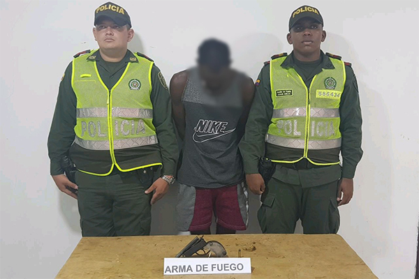 En cumplimiento a la ofensiva nacional contra el homicidio y mediante el despliegue de acciones operacionales realizadas por la Policía Nacional en el departamento de Bolívar a través de efectivos del Modelo Nacional de Vigilancia Comunitaria por Cuadrantes, logró la captura en flagrancia de un hombre por el presunto delito de tráfico, fabricación, porte o tenencia de armas de fuego.