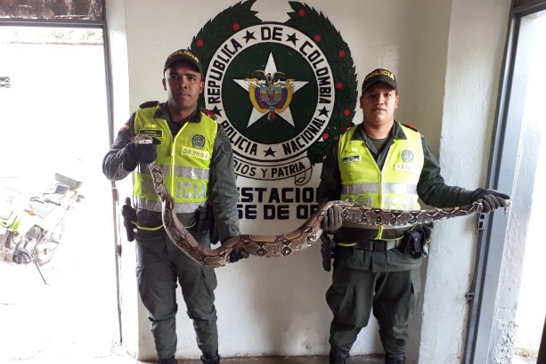 Posteriormente toma contacto con funcionarios de Corpocesar, quienes observan que la serpiente se encuentra en buen estado de salud, manifiestan que su llegada a la zona poblada se dio por desorientación; así mismo, los funcionarios indican a los policías el lugar adecuado donde pueden liberarla.