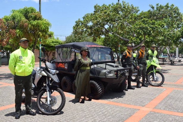 La plaza principal del municipio de La Paz sirvió de escenario para que El Fondo Multidonante de las Naciones Unidas “Alianza para la Paz” y ONU Mujeres, hiciera la entrega formal de los Equipos Móviles de Atención (EMA), compuestos por un vehículo utilitario anfibio 8X8, tres computadores, impresora, cámara, planta generadora, carpa, mesa, dos motocicletas un celular, al Comando de Policía Cesar.
