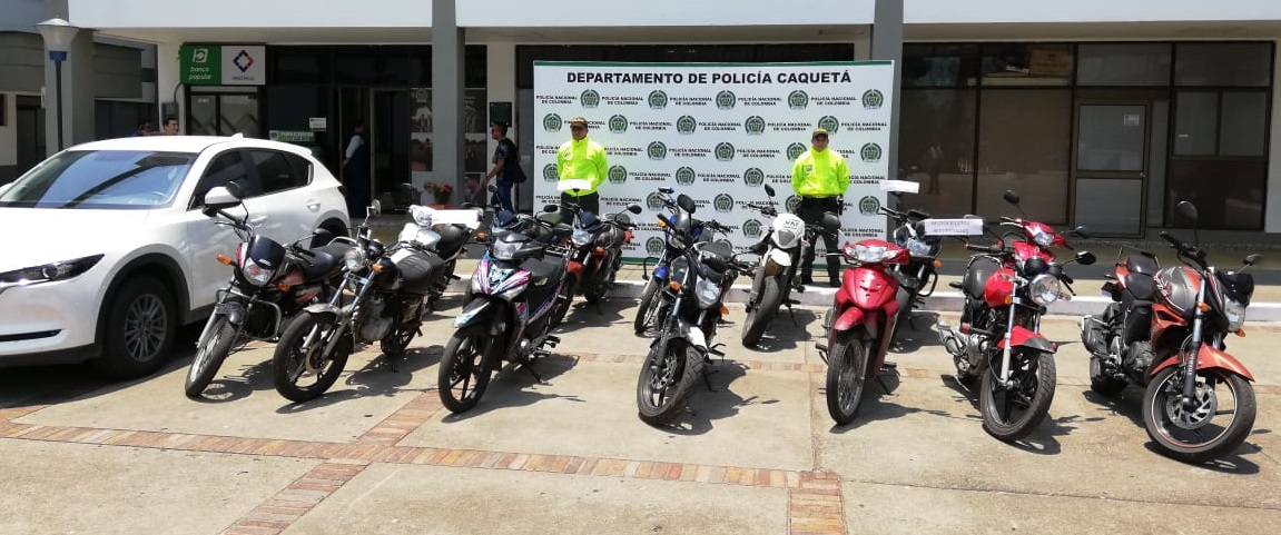 Durante operativos del Plan Choque fase III “Construyendo Seguridad”, en diferentes municipios del departamento del Caquetá, funcionarios de la Seccional de Investigación Criminal (SIJIN) en coordinación con la Fiscalía, mediante varios días de investigación y gracias a operativos contra las organizaciones delincuenciales que se dedicaban al hurto de automotores, lograron la recuperación de 24 motocicletas y 2 vehículos de alta gama que habían sido hurtados en varias ciudades del país, y estaban transitando en el departamento.