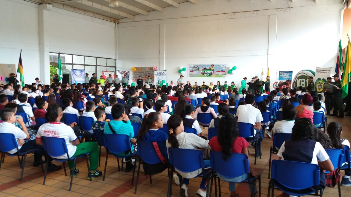 Más de cuatrocientas personas presenciaron el lanzamiento de la estrategia de seguridad “de regreso a clases seguro, más cerca al ciudadano”, donde la Policía Nacional en coordinación con el ICBF, administración municipal, secretaria de educación departamental, personería de Florencia, comerciantes, padres de familia y comunidad educativa reúnen esfuerzos y toda la capacidad institucional para que se preste el servicio de educación y seguridad a todos los infantes y adolescentes que estudian en el plantel educativo La Esperanza y demás instituciones educativas de Florencia y el resto de municipios del Caquetá.