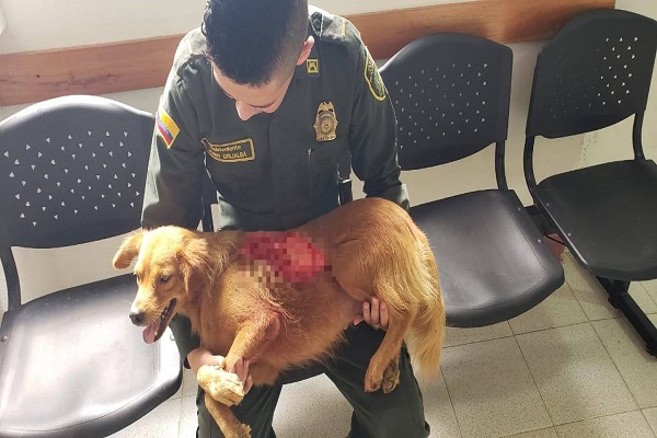 El animal fue encontrado cerca de la Estación de Policía de ‘Pie de Pató’, con manifestaciones de dolor y agotamiento por una grave herida causada con un elemento corto contundente (Machete)