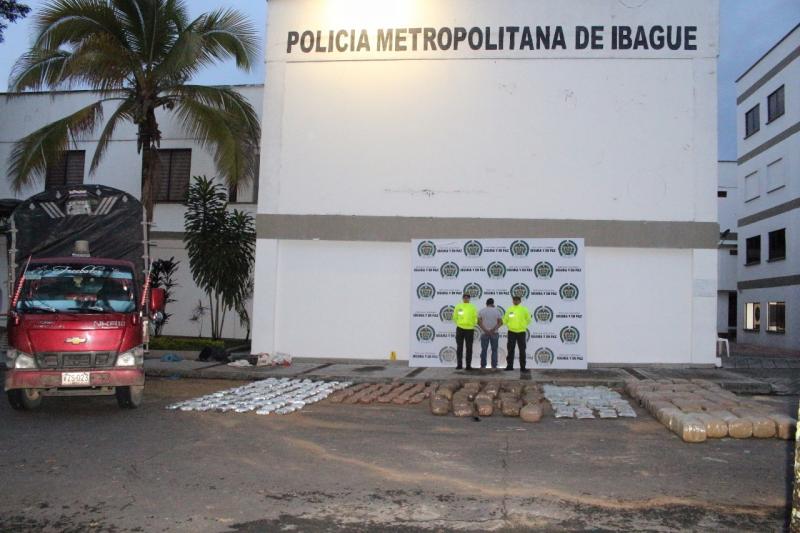 En los controles que se adelantan en las vías que conducen a la ciudad de Ibagué en un trabajo integrado por personal del Modelo Nacional de Vigilancia Comunitaria por Cuadrantes y la Seccional de Investigación Criminal SIJIN de la Policía Metropolitana de Ibagué, en la vía que de Ibagué conduce al municipio de Rovira, fue detenido un vehículo tipo camión de estacas, este vehículo transportaba 63 lonas de gallinaza las cuales ocultaban 327 paquetes de diferentes tamaños en cuyo interior contenía 737.000 gramos de marihuana tipo Cripy, que equivalen a la misma cantidad en dosis para los consumidores.