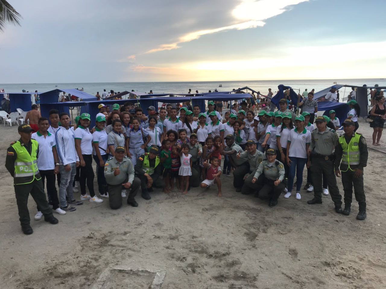 En cumplimiento de la Ofensiva Nacional contra el Delito ordenada por el señor Presidente de la República y la Dirección General de la Policía Nacional de todos los colombianos, la Policía Metropolitana de Santa Marta, a través de uniformados adscritos al Grupo de Infancia y el Grupo de Protección al Turismo, con motivo de la temporada de vacaciones de Semana Santa que se avecina, llevaron a cabo en el sector del balneario del Rodadero la campaña denominada “Ojos en Todas Partes”, dirigida a propios y turistas con el objetivo de prevenir la explotación sexual comercial de niños, niñas y adolescentes en todas sus modalidades.