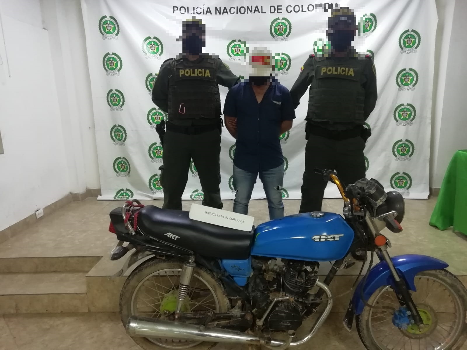 La Policía Nacional, a través de efectivos del Modelo Nacional de Vigilancia Comunitaria por Cuadrantes del Magdalena Medio, logró la captura en flagrancia de “Leonardo” por el delito de receptación y se obtuvo la recuperación de una motocicleta.