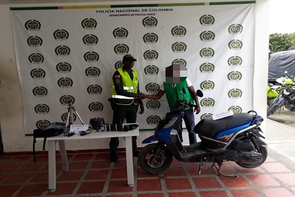 En desarrollo del plan de choque, ordenado por el señor presidente de la República y la Dirección General de la Policía Nacional de todos los colombianos, el Departamento de Policía Chocó, mediante acciones policiales desplegadas por uniformados adscritos al Modelo Nacional de Vigilancia Comunitaria por cuadrantes, logró en las últimas horas la recuperación de 01 motocicleta, y 01 cámara fotográfica, avaluados en la suma seis millones quinientos mil pesos ($6.500.000), las cuales habían sido hurtadas, minutos antes mediante intimidación con arma de fuego.