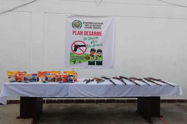 Los uniformados adscritos al Departamento de Policía Norte de Santander se las ingeniaron para que los ciudadanos que tenían en su poder algún arma de estas características, se decidieran a entregarlas y a cambio de ellas recibir mercados donados por los mismos comerciantes, y de esta manera, apoyaron el esfuerzo realizado por la institución de promover y garantizar la convivencia y seguridad ciudadana.