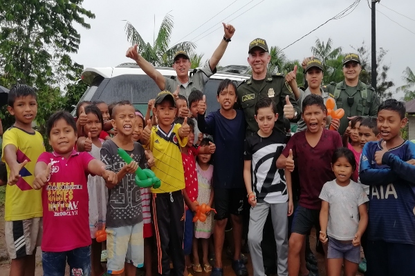En conjunto con cada una de las especialidades como: Infancia y Adolescencia, Grupo de Prevención y Educación Ciudadana, Grupo de Guías y Caninos y el Modelo Nacional de Vigilancia Comunitaria por Cuadrantes, participamos de la mano con nuestra comunidad indígena 12 de Octubre, ejecutando cada una de las capacidades preventivas y disuasivas enfocadas en la solución de problemas de seguridad y convivencia.