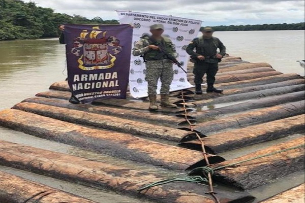 En coordinación con la Armada incautamos 600 trozas de madera en Docordó Chocó